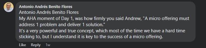 And finally, we'll tackle how to price your first micro-offer. Pricing can be a bit of a mystery, but I've got some tips and tricks that'll make it a breeze. It's all coming up on Day One, and trust me, you won't want to miss it!